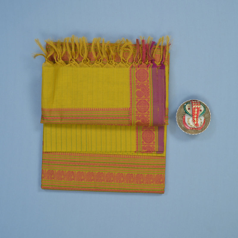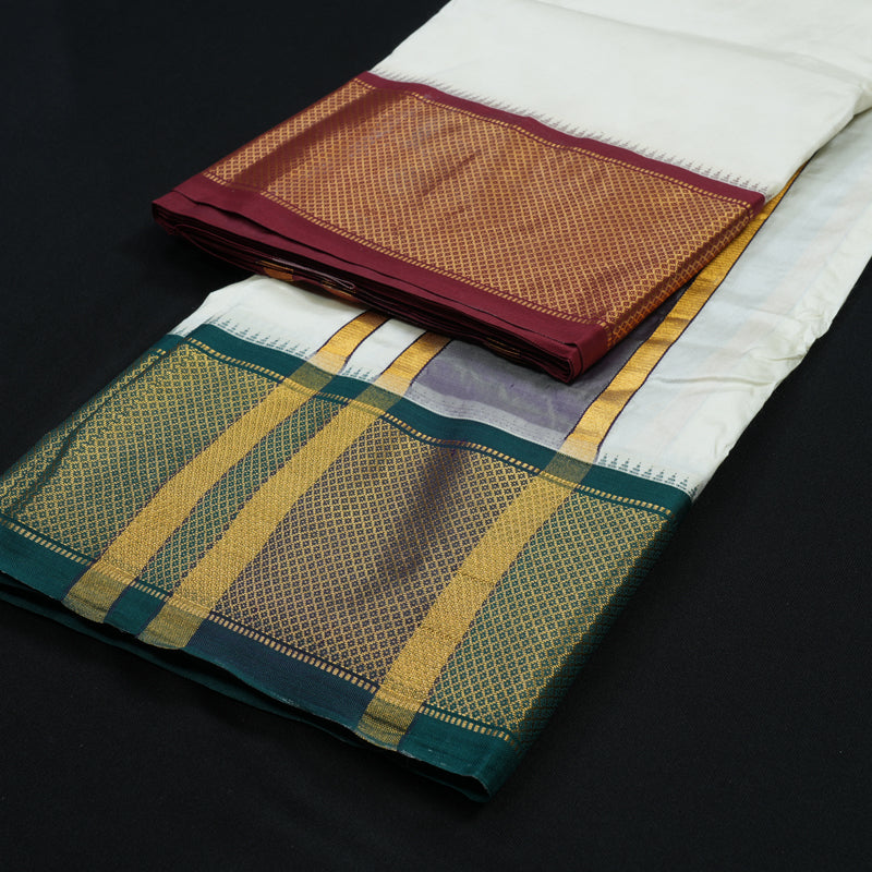 Time-honoured designs practiced for generations, woven in pure silk, perfect for sacred Muhurtham moments and traditional wedding rituals.