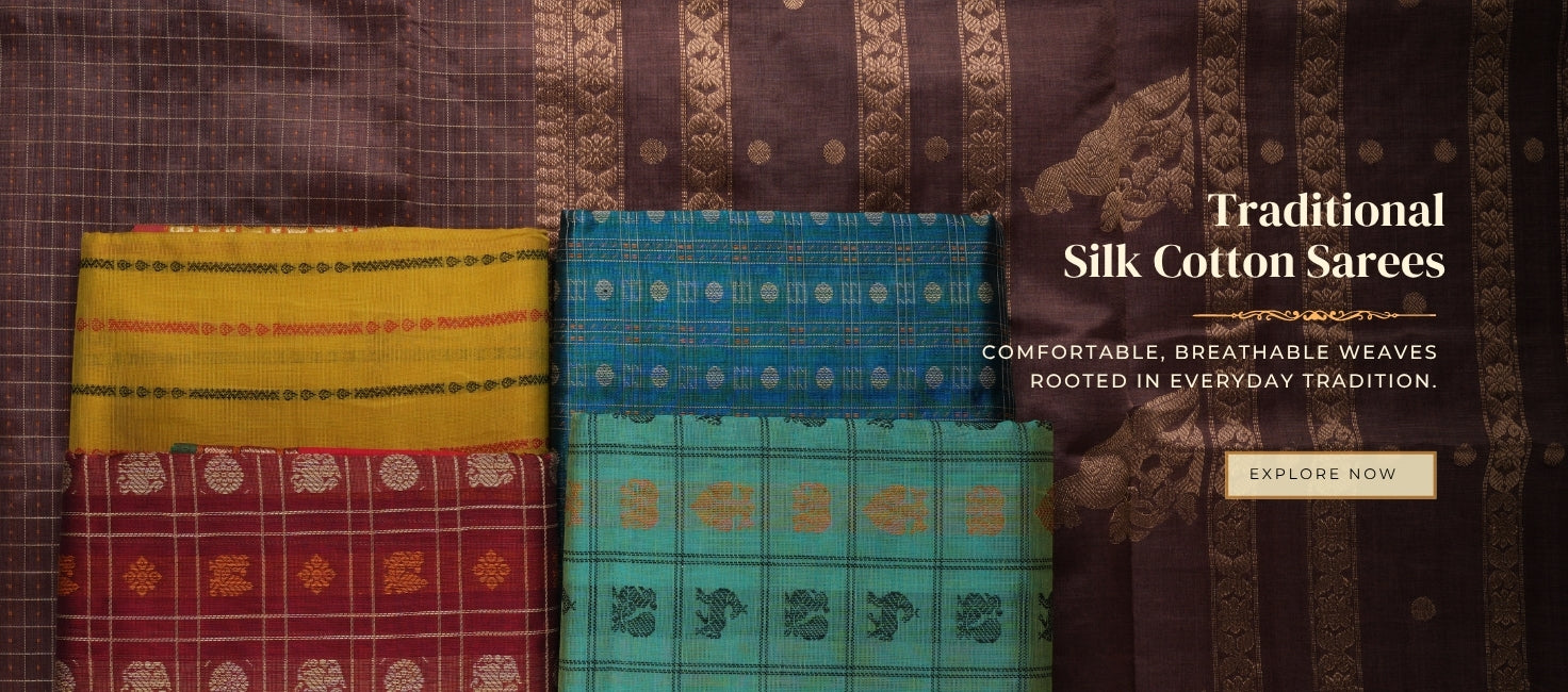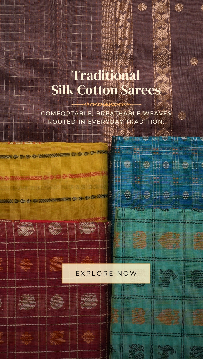 From bridal silks to wedding-day traditions, discover sarees thoughtfully curated for every sacred moment of your Muhurtham.