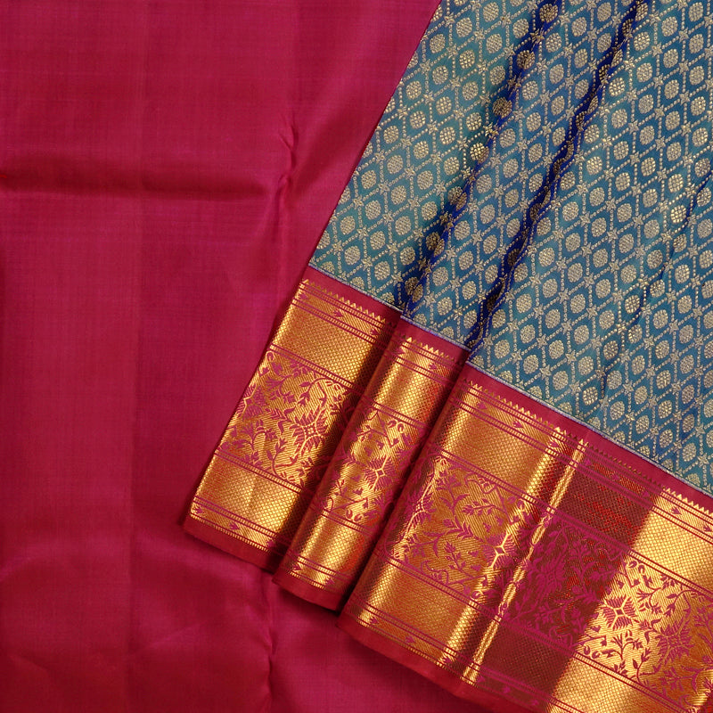 Hayagrivas Handloom Kanjivaram Pattu Pavadai in luxurious Peacock Blue with Deep Pink KBE552F26-1