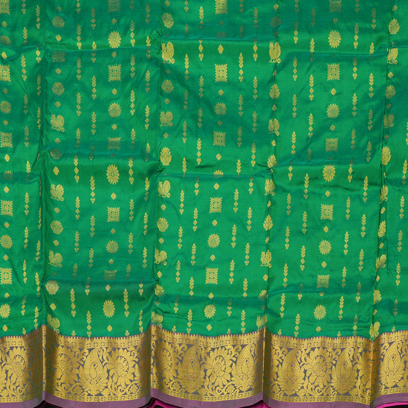Hayagrivas Green Kanjivaram Pattu Pavadai with Purple border KBD1741A3-2