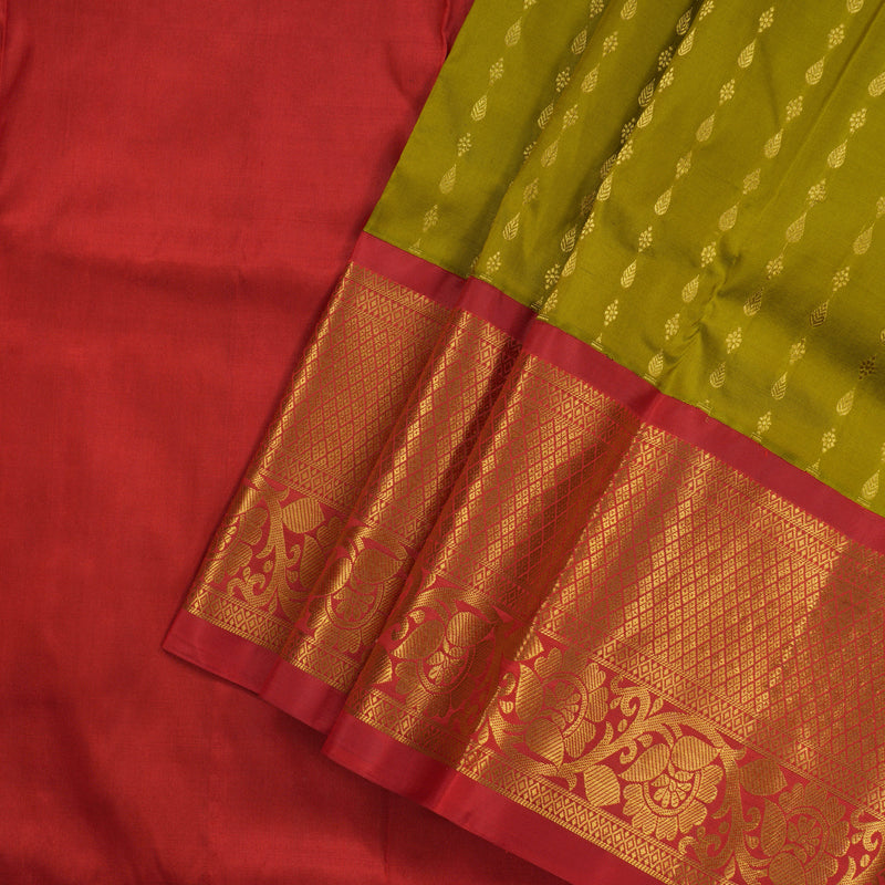Hayagrivas Handloom Olive Yellow Kanjivaram Silk Pattu Pavadai with Red Border KBE1147I8-3