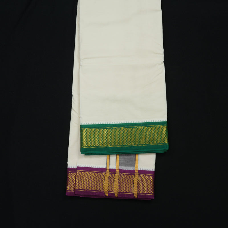 Hayagrivas Pure Cotton Dhoti 10*6 with Ganga Jamuna border KBE1162I6-1