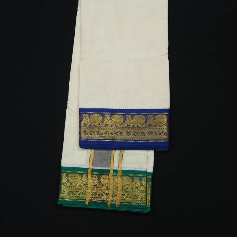 Hayagrivas Pure Cotton Dhoti 9*5 with Ganga Jamuna border (3 FAN) KBE965H3-1