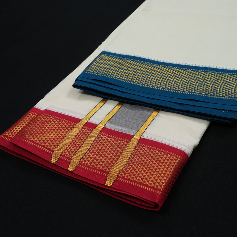 Hayagrivas Pure Cotton Dhoti 9*5 with Ganga Jamuna border KBE1491J1-1