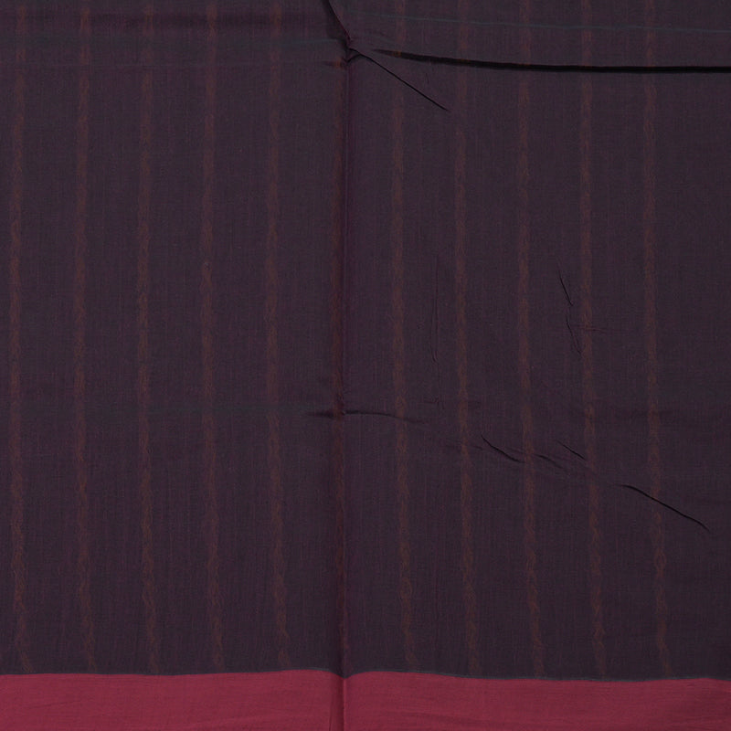 This sophisticated Handloom cotton saree features a deep burgundy body that exudes a rich and timeless appeal. It is elegantly framed by a tonal maroon border and completed with a burgundy blouse and pallu, offering a seamless and refined look for Rs. 1,700.