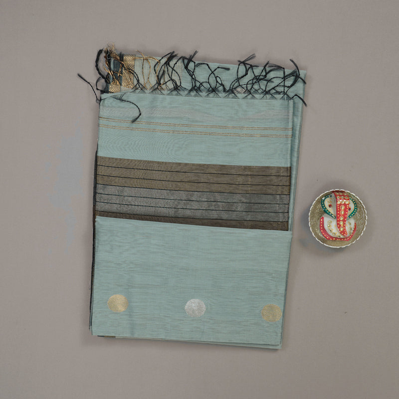 A serene and elegant look defines this Silver Grey Kora Silk Cotton Saree. This lightweight Kora Silk Cotton blend features delicate coin buttas woven all over the body, providing a subtle, shimmering texture. This is an ideal silk cotton saree for daytime events and sophisticated, comfortable wear.