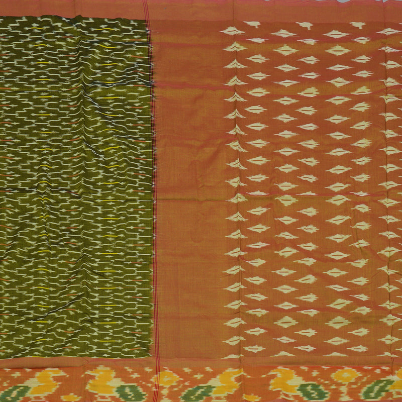 Hayagrivas Mehandi Green Ikkat Semi Cotton Saree with Onion Pink Border KBE1558K1-22