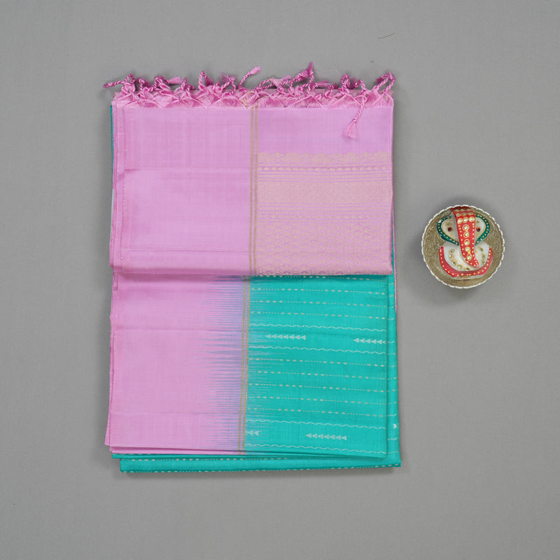 Hayagrivas Teal Pure Soft Silk Saree with Lavendar Pink Border KBE1620K1-1