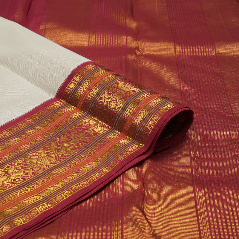 Hayagrivas Handloom Beige Kanjivaram Silk Saree with Ganga Jamuna border KBE1624K12-1