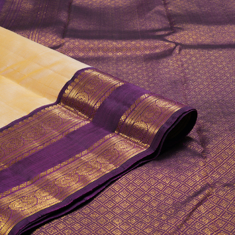 Hayagrivas Light Sandal Handloom Kanjivaram Silk Saree with Dark Purple Border BBD951J5-1