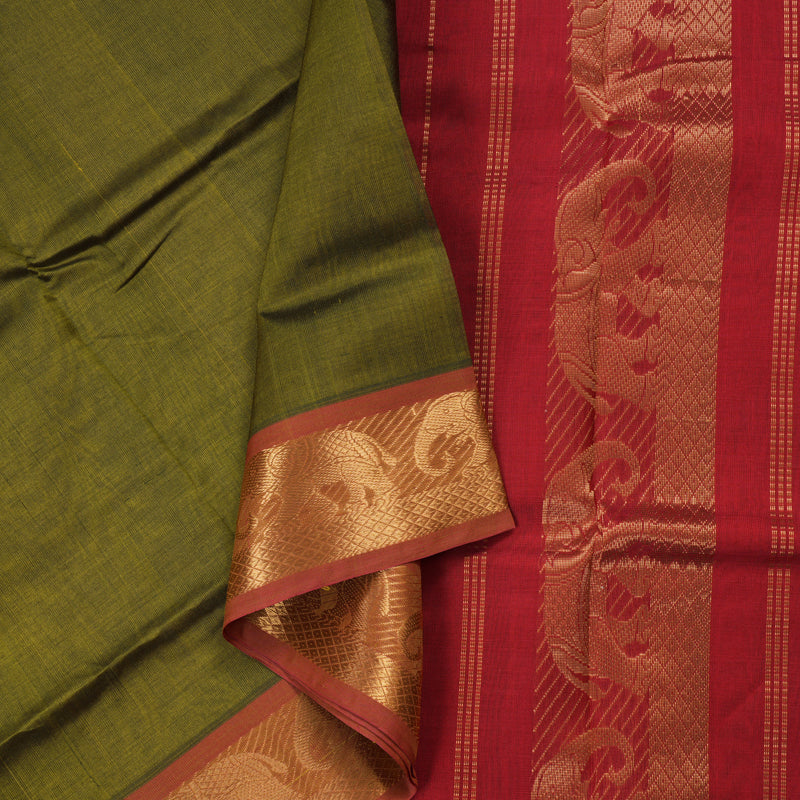 Hayagrivas Handloom Silk cotton saree in Mehandi green with maroon KBD1859B2-9