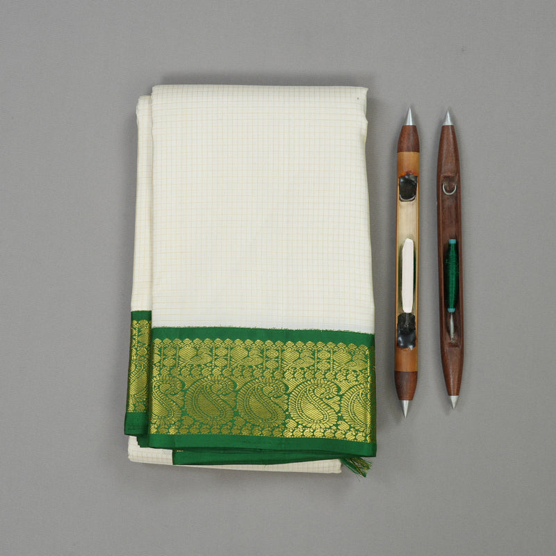 Hayagrivas Handloom Half White Kanjivaram Silk Saree with Dark Green Border KBE146D11-1