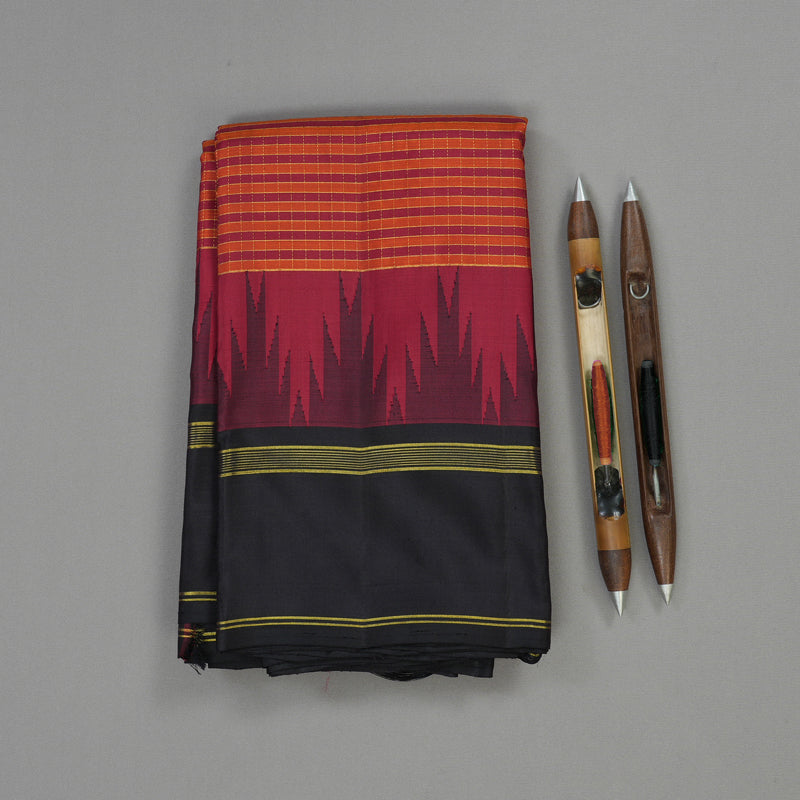 Hayagrivas Handloom Maroon & Orange Checks Kanjivaram Silk Saree with Black border KBD1886B10-1