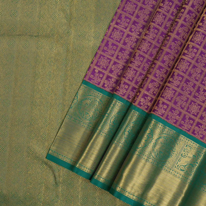 Hayagrivas Handloom Purple Kanjivaram Silk Saree with Peacock Green border KBE1841L5-1