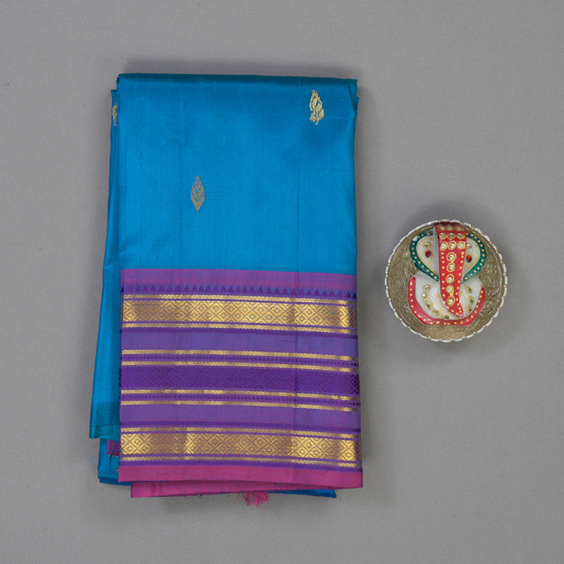 Hayagrivas Ananda Blue Pure One-sided border Kanjivaram Silk Saree KBE2004L9-2