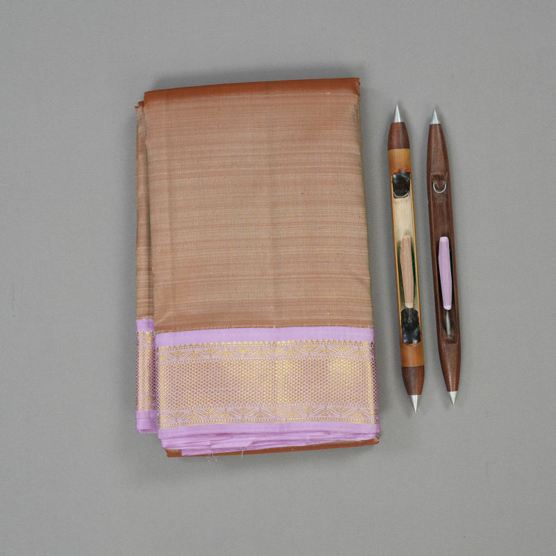 Hayagrivas Handloom Mild Chocolate Brown Kanjivaram Silk Saree with Lavendar border KBE1220I2-7