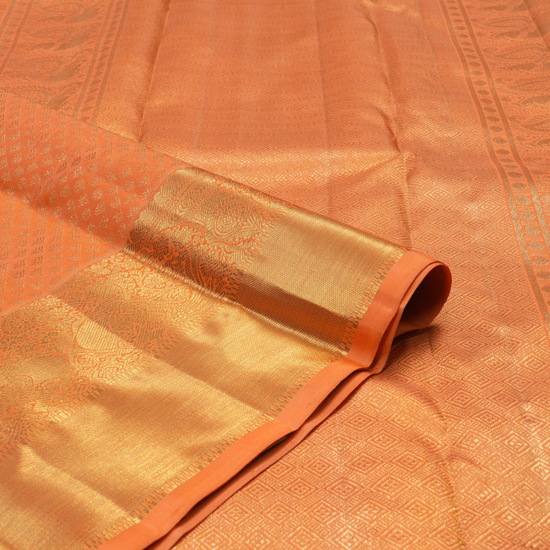 Hayagrivas Handwoven Bridal Kanjivaram silk saree in captivating Peach Orange BE292-SBS