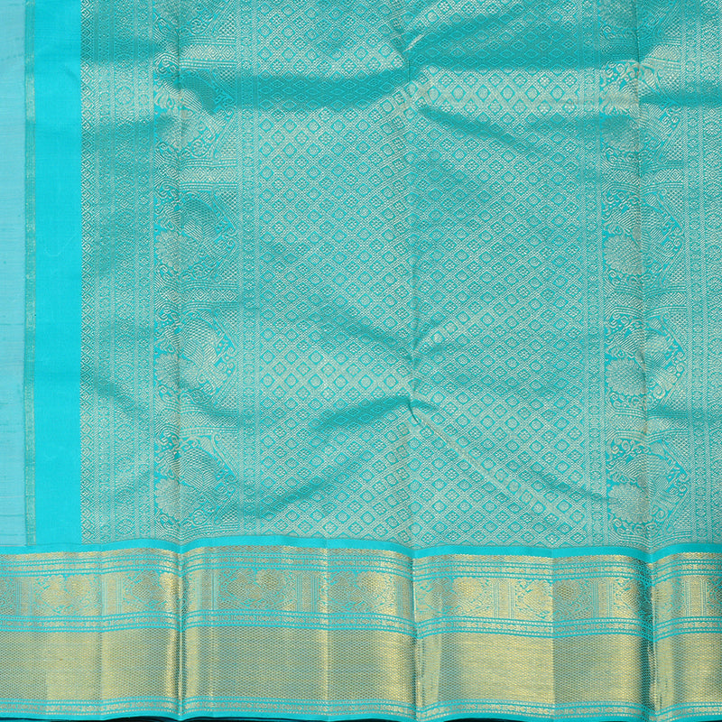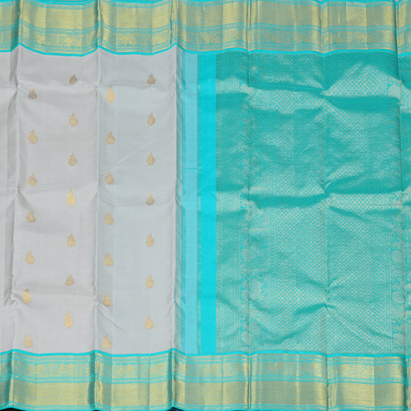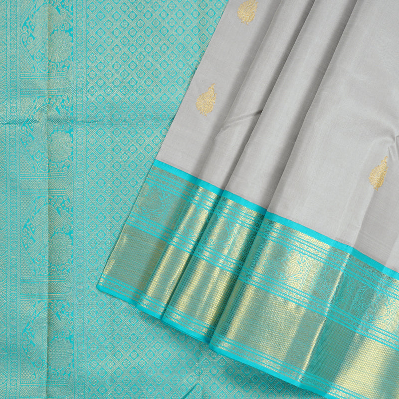 Hayagrivas Silver Grey Handloom Kanjivaram Silk Saree with Sea Blue Border KBE4D20-1