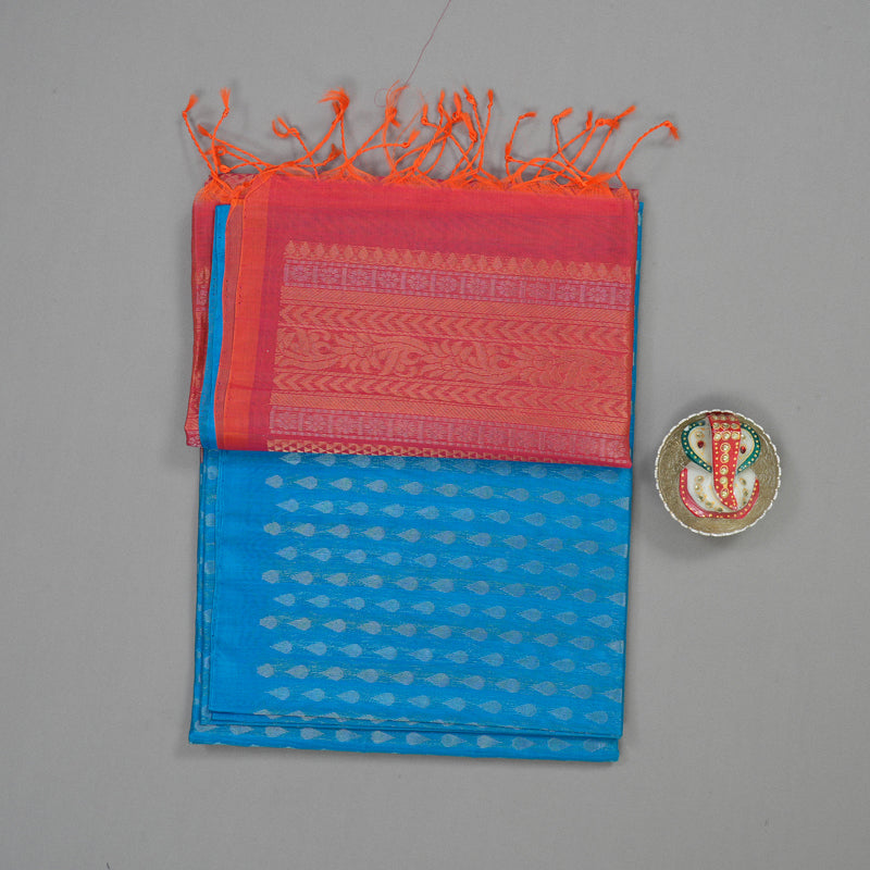 Hayagrivas Aqua Blue Pure Kora Silk Cotton Saree KBE1485J6-1
