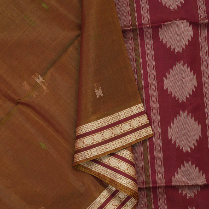 Hayagrivas Handloom Dual Tone Musard & Maroon Kora Silk Cotton Saree with Border KBE1485J5-8