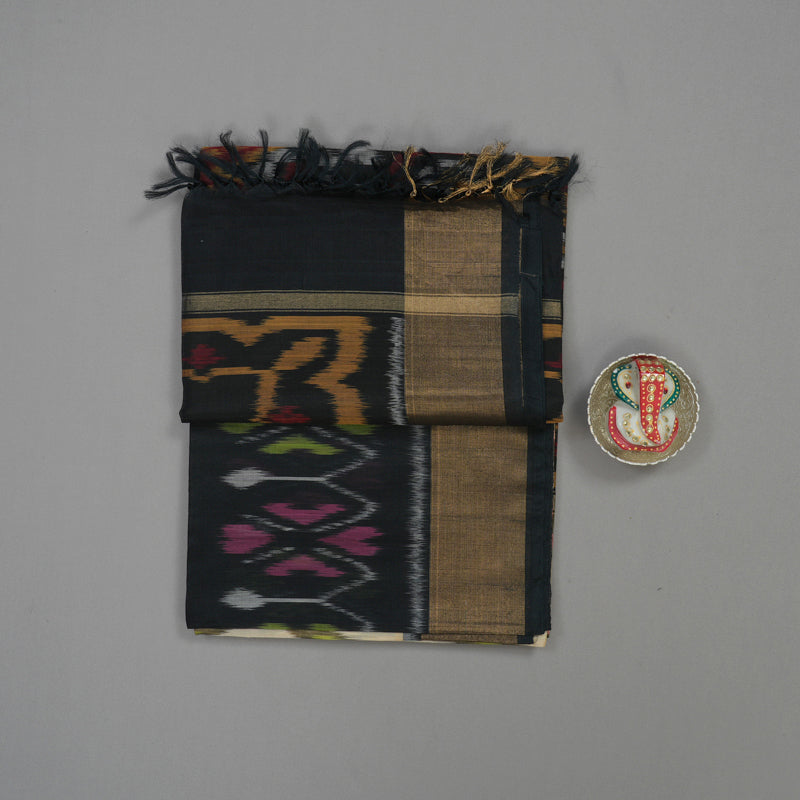A sophisticated contrast distinguishes this Sandal Ikkat Kora Silk Cotton Saree, framed by a sharp Black Border. This comfortable Kora Silk Cotton blend features a subtle Ikkat-inspired pattern woven across the body. This is an ideal versatile saree that offers the artistic style of Ikkat with a refined, earthy colour palette.
