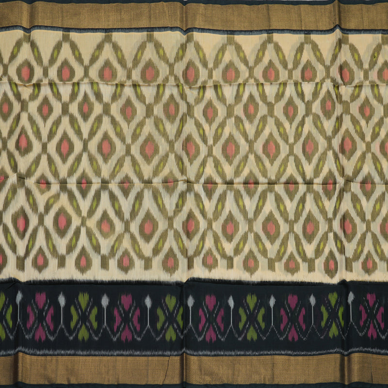 Hayagrivas Handloom Sandal Ikkat Kora Silk Cotton Saree with Black Border KBE663G1-54