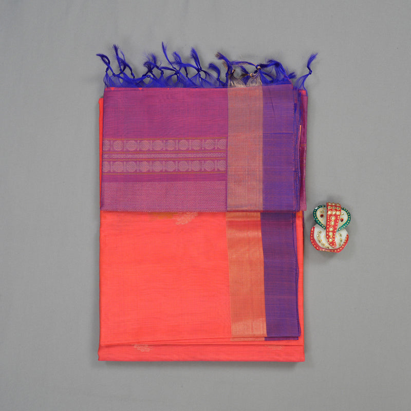 Hayagrivas Pure Kora Silk Cotton Saree in Peach Pink with Magenta KBE657G3-41