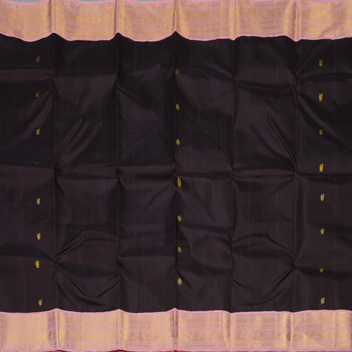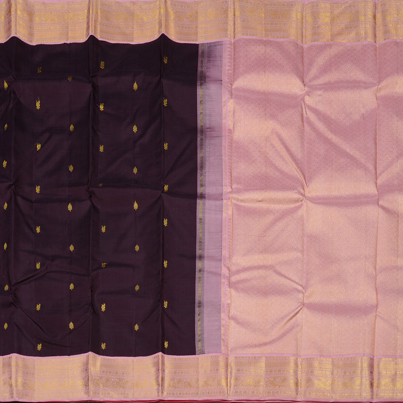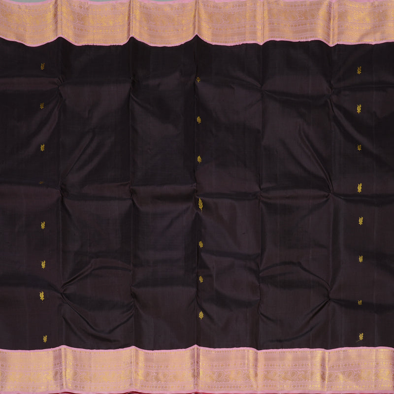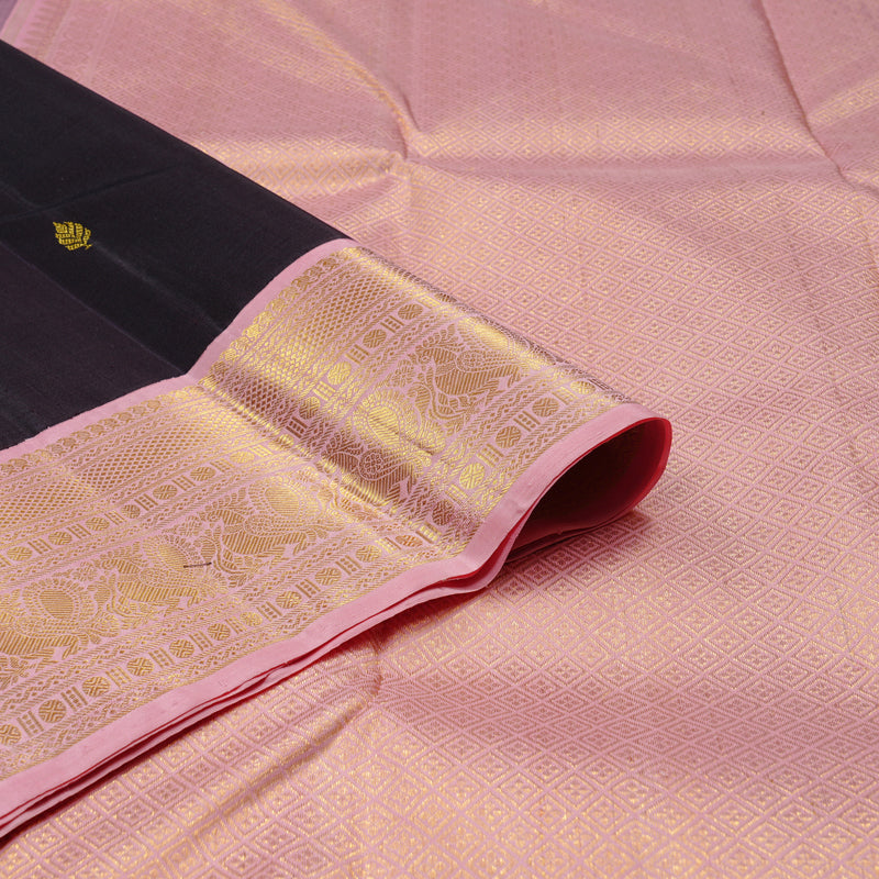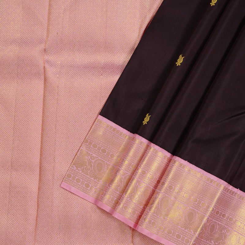 Hayagrivas Dark Brown Handloom Kanjivaram Silk Saree with Baby Pink Border KBE40D4-1