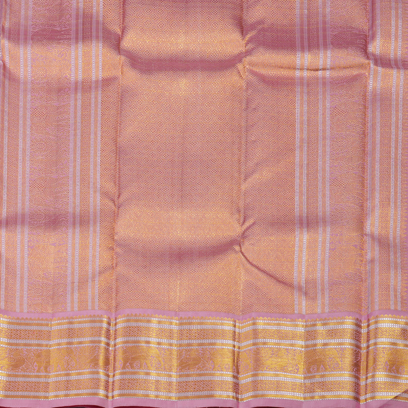 The saree is beautifully balanced by a soft yet vibrant rose pink pallu and blouse, featuring a richly woven pallu that exudes bridal grandeur. Priced at ₹26,370, this high-end masterpiece is a perfect blend of modern colour and timeless heritage.