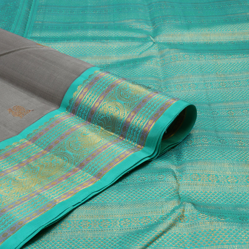 Hayagrivas Handloom Elephant Grey Kanjivaram Silk Saree with Sea Green border KBE1911L4-1