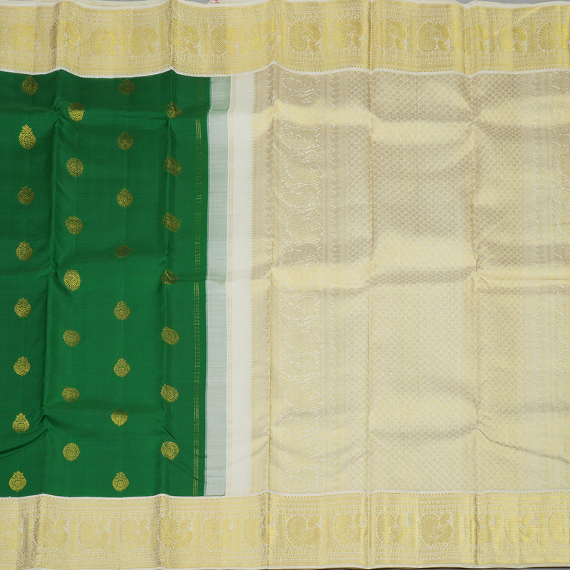 Hayagrivas Handloom Green Kanjivaram Silk Saree with Ivory border KBE1861L1-1