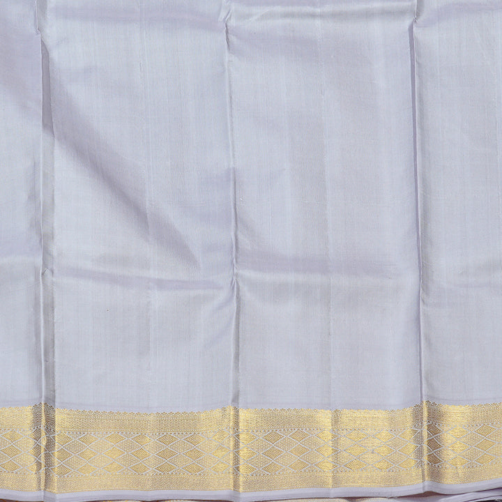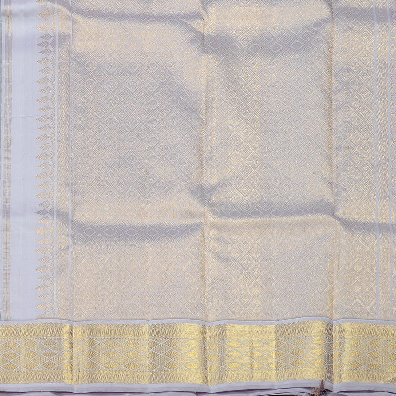 The wide korvai border in silver and white adds just the right amount of drama without overpowering the look. A classy pick for evening receptions or festive rituals.