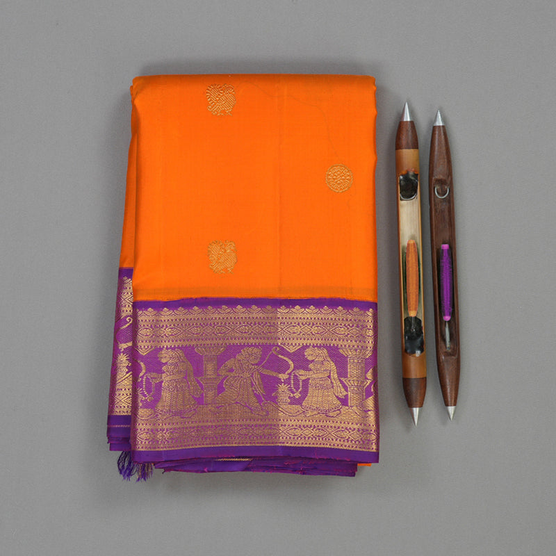 Hayagrivas Handloom Orange Kanjivaram Silk Saree with Purple Border KBE2282B5-1
