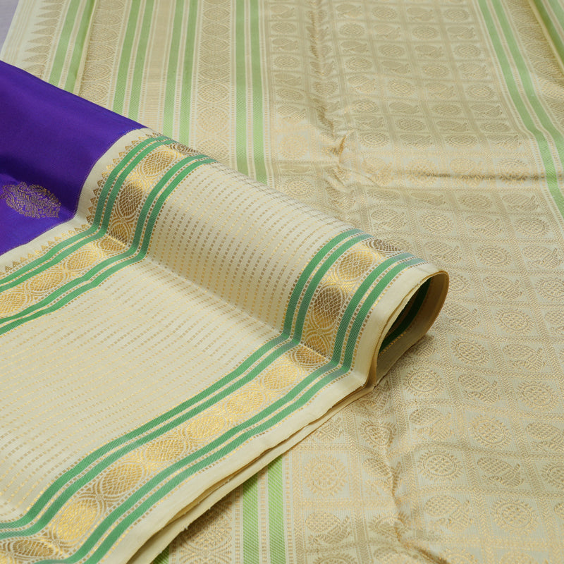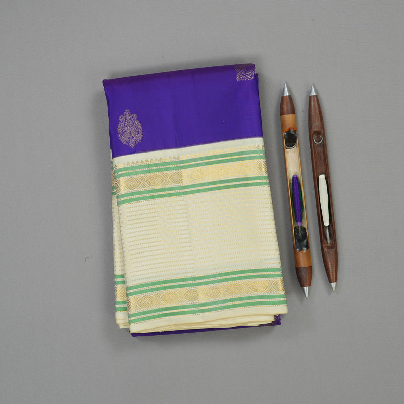 Hayagrivas Handloom Purplish Blue Kanjivaram Silk Saree with Cream border KBE1874L22-1