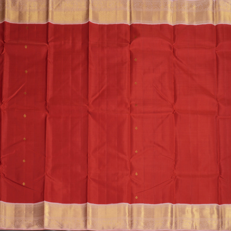 Hayagrivas Handloom Red Kanjivaram Silk Saree with Peach Pink Border KBE2210A1-3