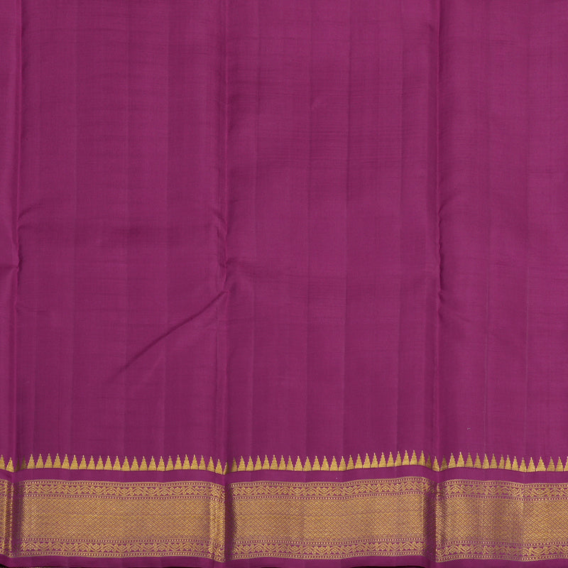 The ensemble is completed by a richly woven purple pallu, showcasing the intricate gold zari work that is the hallmark of Kanjivaram craftsmanship. Priced at ₹20,480, this saree is a magnificent choice for festive occasions and weddings, offering a look of timeless grace and luxury.