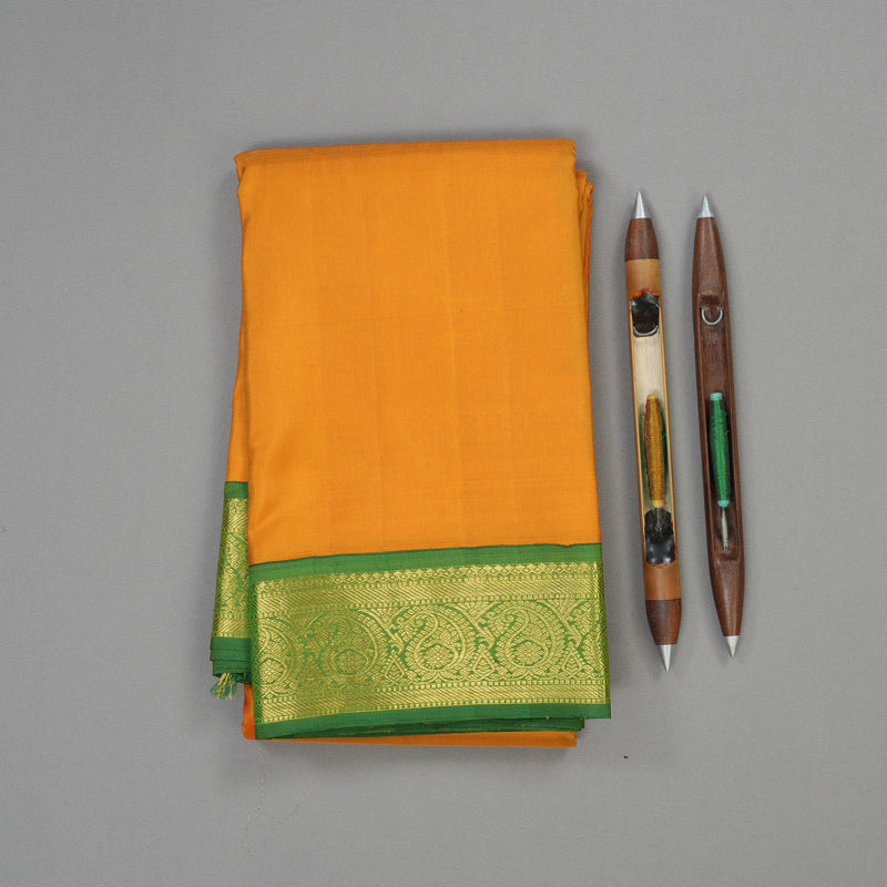Hayagrivas Handloom Tumeric Yellow Kanjivaram Silk Saree with Green border KBE1741K3-1