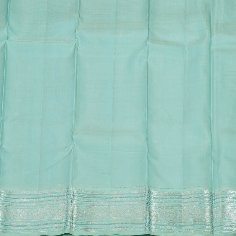 Here comes a stunning masterpiece from Hayagrivas Silk House, featuring an impeccably crafted korvai contrast design. The saree is defined by its magnificent varisapet silver jari border, which is intricately adorned with a symphony of traditional motifs, including annam, chakaram, paisley, and vanki, creating a look of regal sophistication.