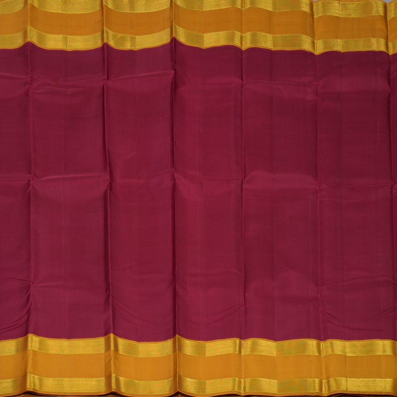 The saree is paired with a vibrant mustard yellow pallu and blouse, creating a storied colour combination that is both grounded and celebratory. Priced at ₹18,120, this drape is perfect for temple wear or traditional events, offering a dignified and culturally rich aesthetic.