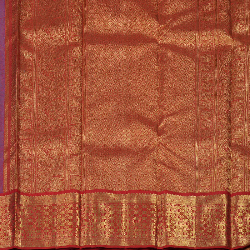 The saree is framed by a classic rudraksham border, a symbol of purity and heritage, which leads into a breathtaking rich woven pallu in a bold red. Complemented by a matching red blouse, this ensemble radiates a timeless bridal glow. Priced at Rs. 53,120, it is perfect for weddings and special occasions where you wish to embody the height of traditional luxury.