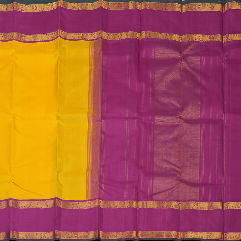 Hayagrivas Handloom Yellow Kanjivaram Silk Saree with Purple Border KBE2519C13-1