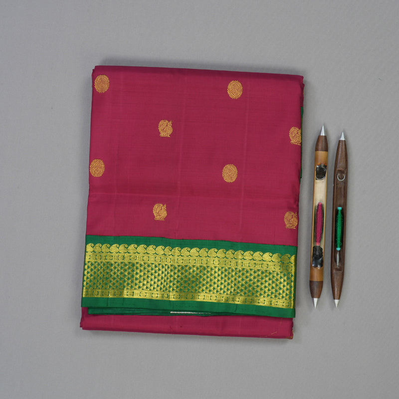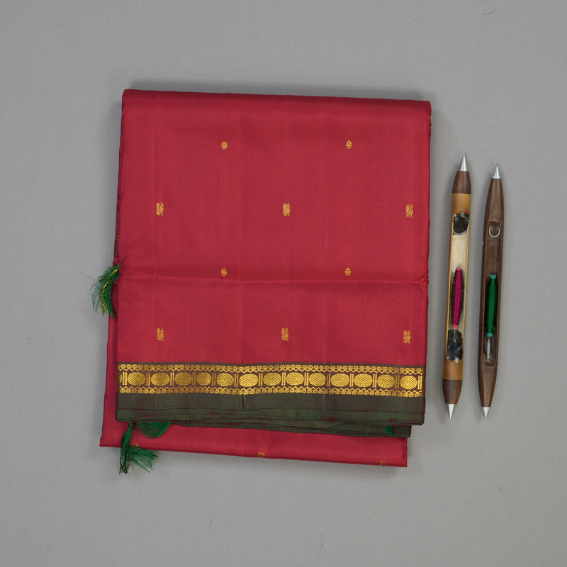The Brahmin community is known for its unique Nine yards way of draping a saree. No wedding, festival or a special occasion is complete without a 9 yards purchase. We bring you a range of Muhurtham (Arakku/Green) Sarees. Trendy Kanjivaram nine yards silk sarees are listed here. 9yards gift sarees and 9yards silk cotton sarees are also available on request. Explore the range, it is sure to impress you!