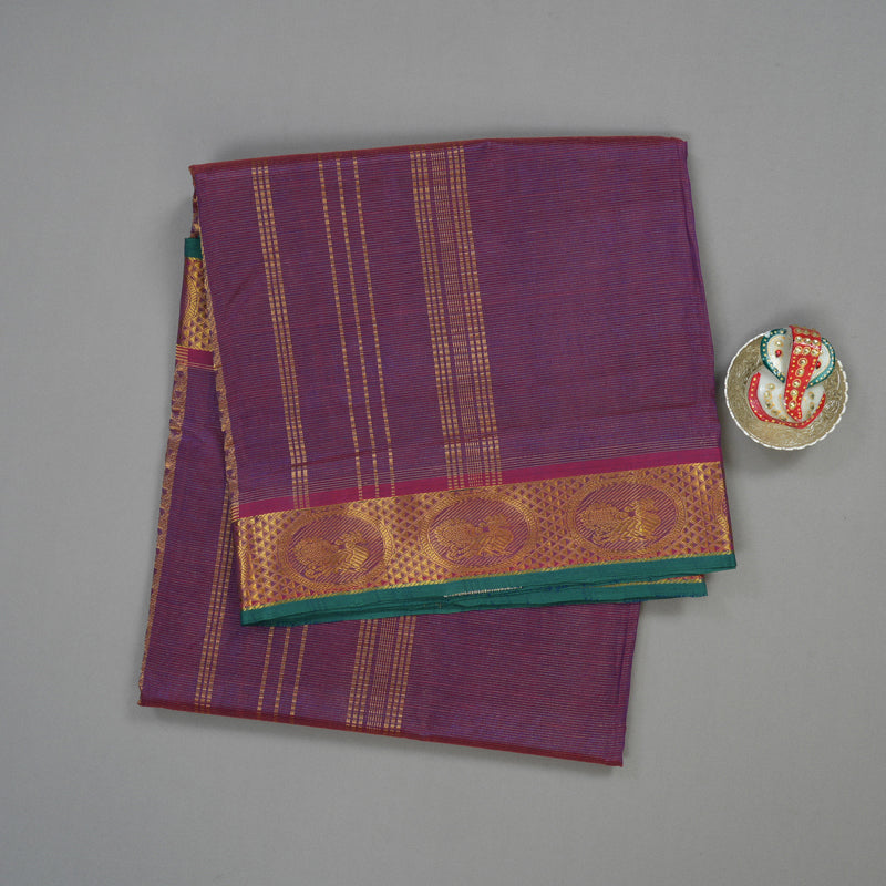 Hayagrivas Handloom Ten Yards Pure Silk Cotton saree in Wine Purple KBE106D7-1