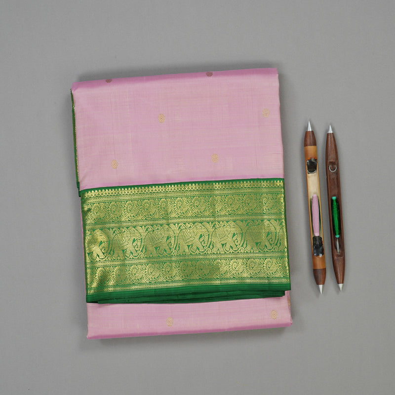 Hayagrivas Handloom Lotus Pink Ten Yards Silk Madisar with Dark Green Border BE701-SBS