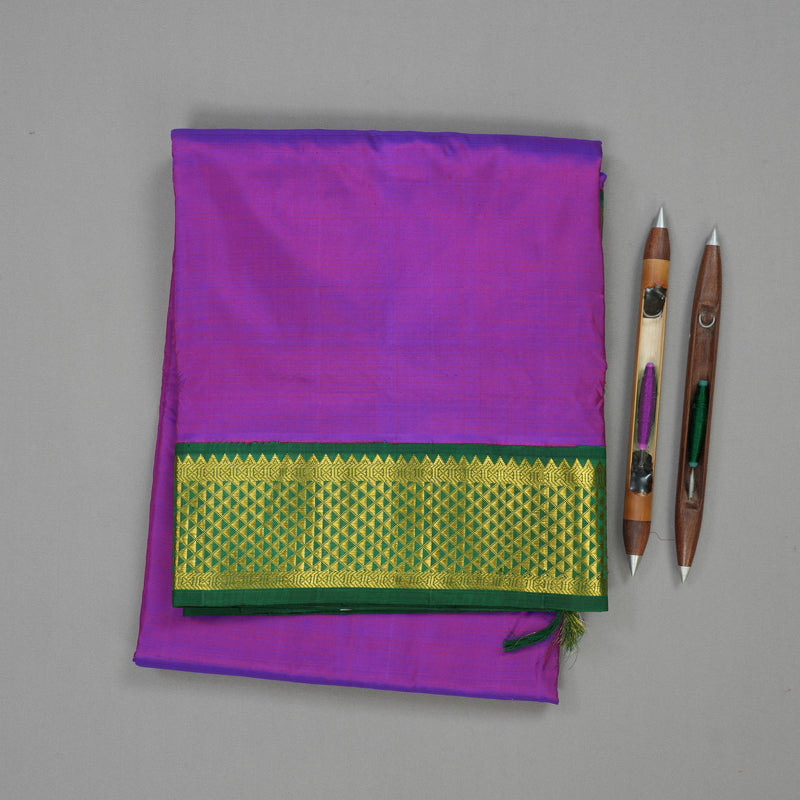 Hayagrivas Handloom Purple Kanjivaram Nine Yards Silk Saree with Bottle Green KBE793H9-4