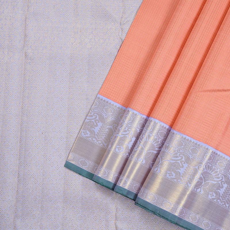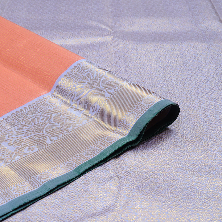 Hayagrivas Handloom Kanjivaram Silk Saree in Radiant Peach Pink KBD2024B3-1