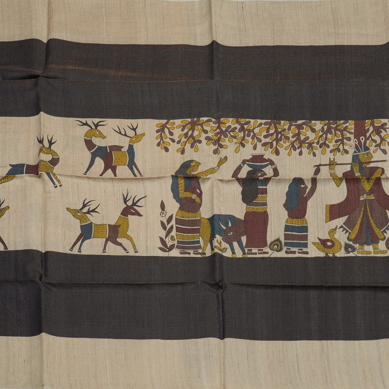 Hayagrivas Beige & Black Pure Tussar Saree KBE1383J6-18