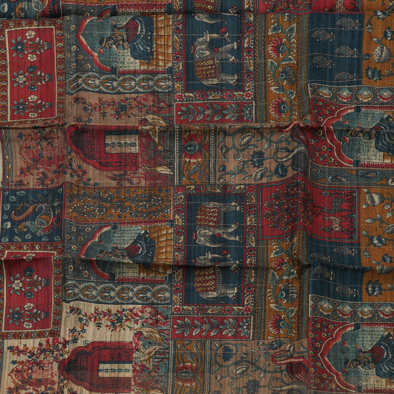 A dynamic, textured look defines this vibrant Multicolour Checks Pure Tussar Saree. This natural silk features an all-over checks pattern across the body, providing a rich, visual texture. This is an ideal pure tussar silk for comfortable, patterned elegance.