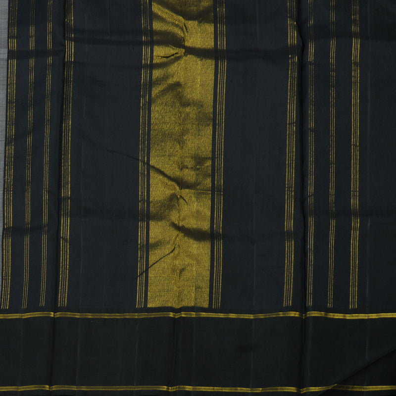 A sharp, classic contrast defines this striking Pristine White Vintage Kanjivaram Silk Saree, framed by a deep Black Border. This pure silk heirloom features a structural Rettapet Temple Border, ensuring an auspicious and commanding presence.
