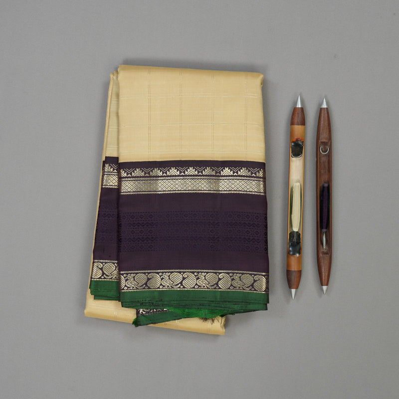 Hayagrivas Handloom Sandal Beige Kanjivaram Silk Saree with Midnight Blue Border KBD1808B10-1